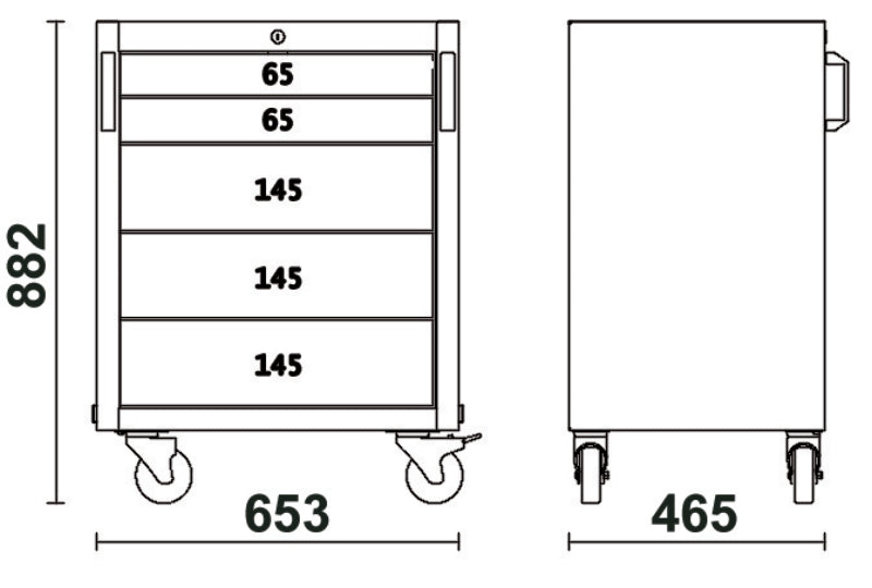 C5 — 5-Drawer | 045000226 | 882 × 653 × 465 mm | 2 × 65 mm • 3 × 145 mm (all 532×406 mm) | 46 kg |