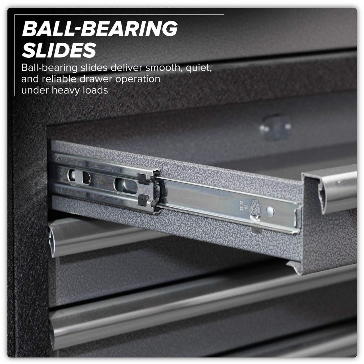 Ball-bearing slides ensure reliable, effortless drawer action