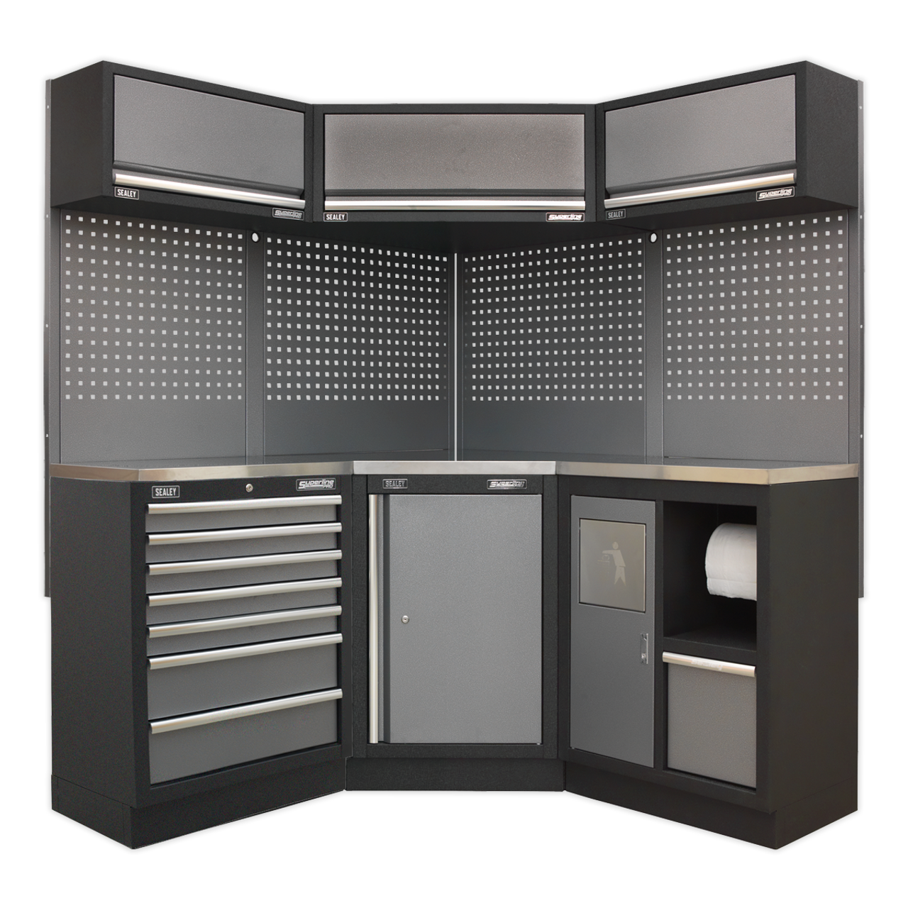 Superline PRO® 1.55m Corner Modular Storage System with Choice of Worktop - Stainless Steel is backordered and will ship as soon as it is back in stock.