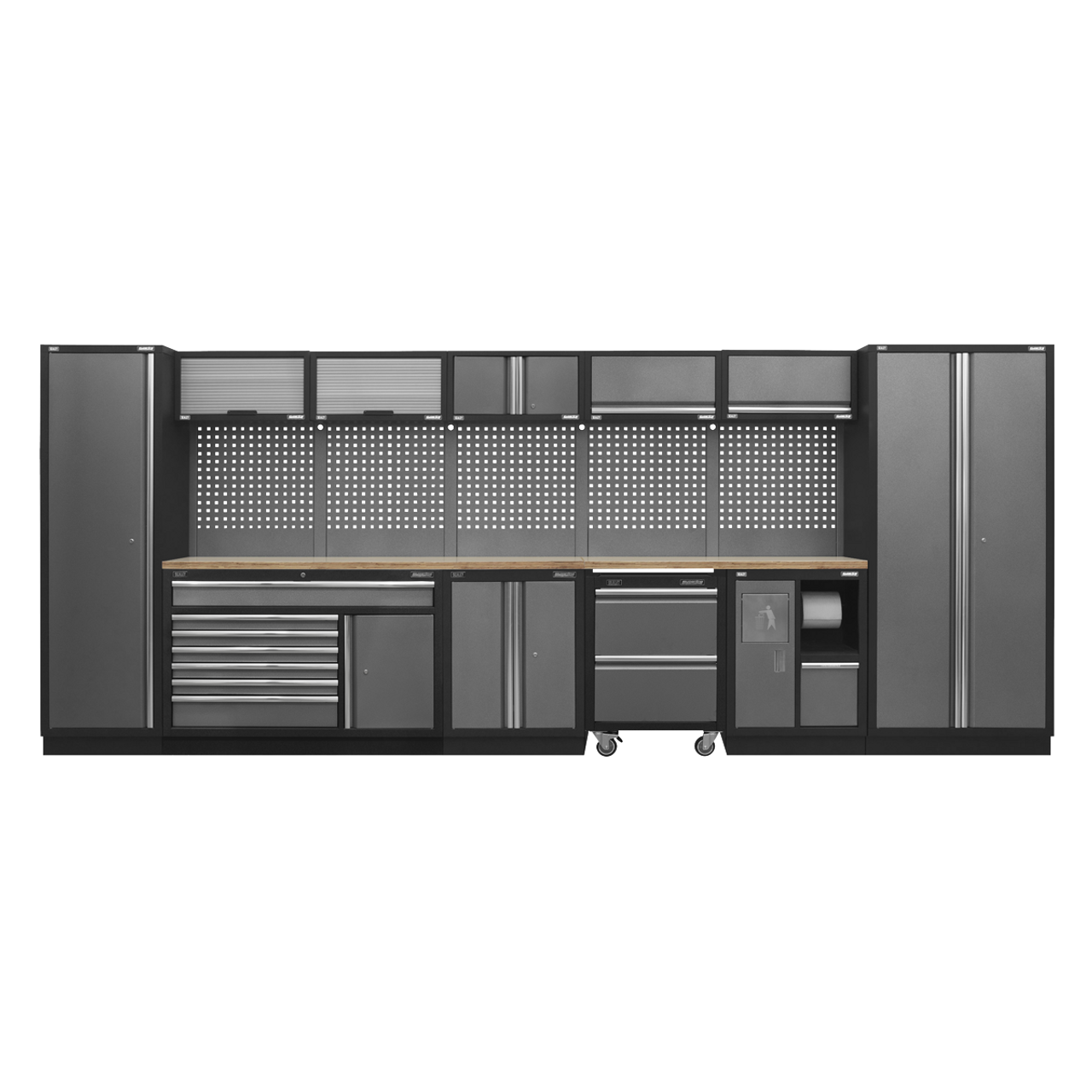 For serious storage and ultimate workshop organisation, the Superline PRO® 4.92m Modular Storage System is the pinnacle of professional workspace design. Available with either a 36mm pressed wood worktop or a 38mm stainless steel worktop, this full-length configuration delivers outstanding capacity, industrial-grade strength, and a clean, professional aesthetic.